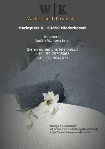 Marktplatz 6 - 53859 Niederkassel nhaberinJudith WalterscheidSie erreichen uns telefonisch+49 157 79705065+49 172 8842071Design & Realisation:All Areas TV UG (haftungsbeschr%u00e4nkt)https://www.fotosession4you.de